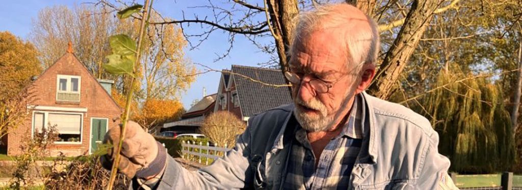 Bert Balk vertelt: “Ik verwacht van deze zaailingen een goede vruchtdragende boom. Maar zoals standaard met deze pruimenbomen gebruikelijk is, zullen we eerdaags enkele enten nemen en die nog deze maand op de juiste onderstam zetten. Dan weten we zeker dat de smaak, het formaat, de opbrengst en de groeiwijze de juiste zijn van de Bangertse Blauwe. De naam van dit traditioneel Nederlandse pruimenras verwijst naar de fruitstreek De Bangert. De boom wordt ook wel ‘de grote blauwe’ genoemd omdat de boom de neiging heeft erg groot te worden. De pruimen daarentegen zijn ten opzichte van de pruimen die je tegenwoordig koopt, klein te noemen. Diepblauw tot paars van kleur met een licht wasachtig dauwschijnsel op de schil. Wij plukken ze altijd in de tweede helft van augustus als ze goed uitgerijpt zijn.”