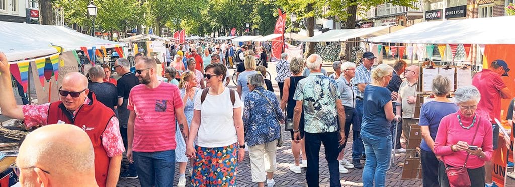 Natuurlijk slingert op zondag door de hele binnenstad weer de grootste Kunst- en Cultuurmarkt van Nederland met maar liefst ruim 175 kramen. Meer dan ooit presenteren kunstenaars, makers en culturele organisaties hun werk, geven demonstraties en nodigen uit tot ontmoeting en inspiratie op deze sfeervolle markt door de hele binnenstad. Met live-painting op het kunstenaarsplein Montmartre op de Roode Steen. Het Kerkplein is voor deze gelegenheid omgedoopt tot Frans dorpsplein, compleet met jeu-de-boulesbaan, sleurhutten en Franse chansons.