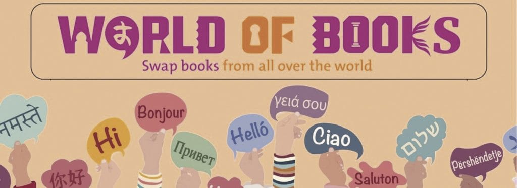 Bij de entree, binnen in de Bibliotheek, staat de ruilkast van World of Books. Hierin staan anderstalige kinderboeken.