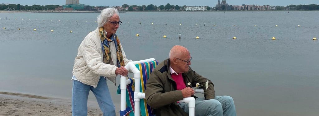 Strandrolstoel, locatie: Strandpaviljoen Reuring, Badhuisweg 1 in Hoorn.
